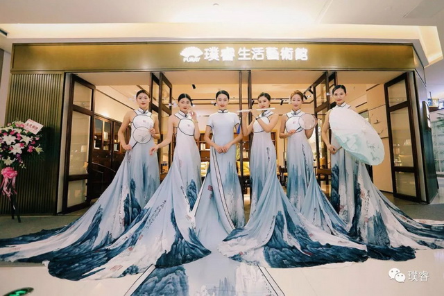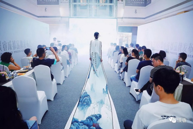 伴随古典音乐响起,“璞睿成都品牌发布会”在以北宋名画《千里江山图》为意境基调的时尚大秀中拉开帷幕,模特身穿旗袍款款走来,一颦一笑,顾盼生姿,让人在感受宋代人文美学的意蕴之中,体验到传统文化与现代时尚结合的妙趣。