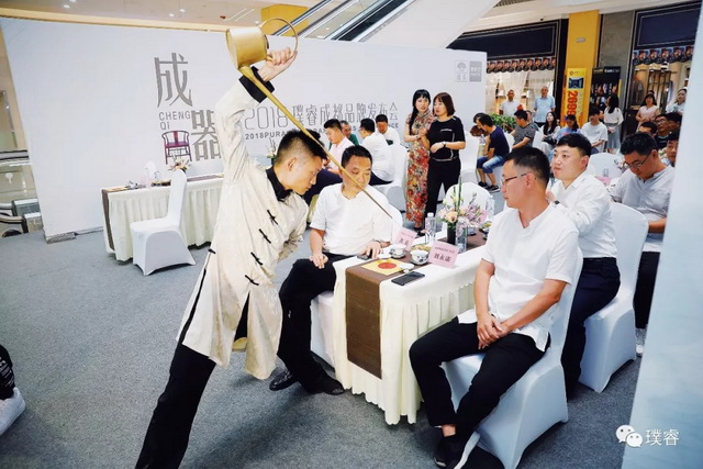 此外,璞睿特邀专业茶艺师重现四川花式茶艺。茶艺师用1.2米长的铜壶稳稳地将滚烫的开水注入茶碗中,且不溅一滴水。表演难度之大,技艺之高,博得来宾阵阵喝彩,丰富和满足了当代人对文人雅致生活的想象。